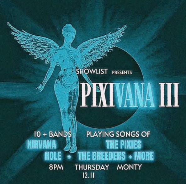 I’m doing a random one-off Nirvana/Pixies tribute show tonight (12/11) with some friends if you get this newsletter on time, come out to the Monty in DTLA!